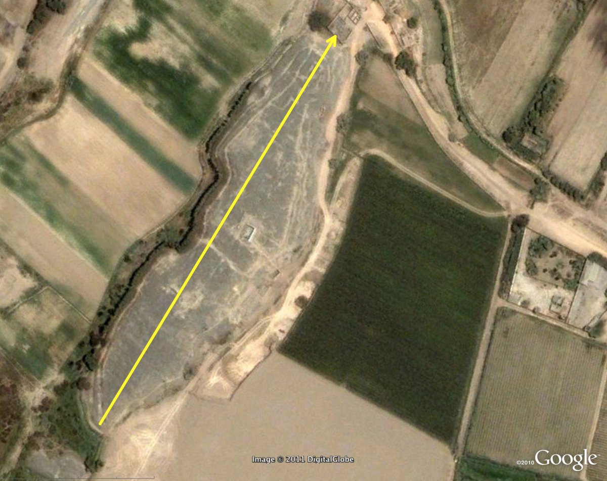Condor Head The El Paraíso condor lines up with this stone sculpted to resemble a condor head. Stone condors are common in the Andes; this is the first one found on the coast. Viewed from the entrance to a 4,000 year old temple at the site, the sun rises over this pillar during the equinox. (CREDIT: Google Earth Pro)