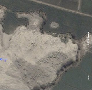 Duck -A natural formation was altered by adding a head to create a duck-shaped mound. A nearby circular mound may represent an egg. These mounds date to approximately 3,500 years ago. (CREDIT: Google Earth Pro)