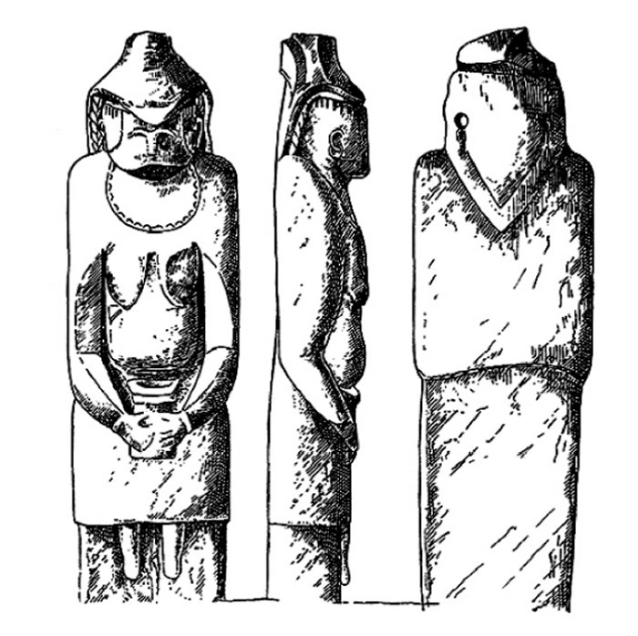 The stele "baba 2" from the Veliko-Anadol Forest Museum (cf Pletneva, 1974a. 152. No.302. Illustration from "Monumental Polovtsian Statues in Eastern Europe: The Archaeology, Conservation and Protection" By Aneta Golebiowska-Tobiasz