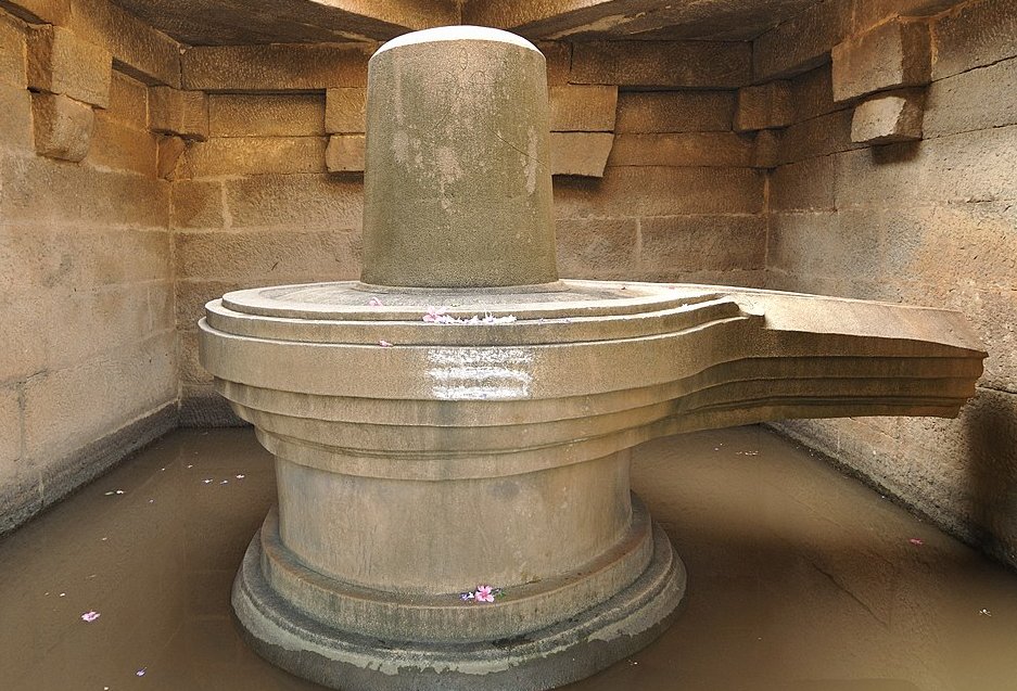 pedestal has burn marks. Giant Shiva Linga is located near the Laxmi Narasimha statue at Hampi.