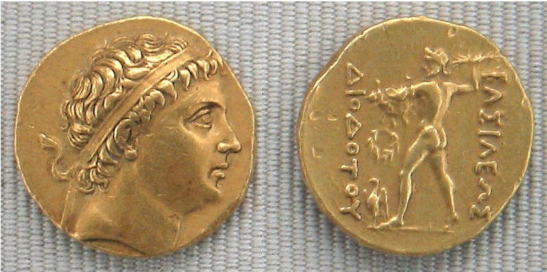 Gold coin of Diodotus I, Seleucid satrap of Bactria who rebelled against Seleucid emperor Antiochus and became the self-crowned ruler of the Greco- Bactrian kingdom. Image credit: National Library in Paris