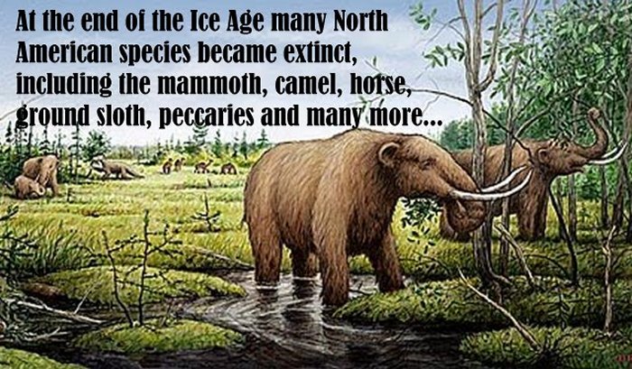 Even closer to our time is the mysterious cataclysm at the end of the Ice Age, only 10,000 years ago. No one really knows if it was the result of natural phenomenon or an asteroid impact. What is known is that the climate drastically altered life for those who lived at that time. It is a known geologic fact that at the end of the Ice Age many North American species became extinct, including the mammoth, camel, horse, ground sloth, peccaries (pig-like hoofed mammals), antelope, American elephant, rhinoceros, giant armadillo, tapirs, saber-toothed tigers and giant bison. It also affected the climates of lower latitudes in Central and South America, as well as Europe in a similar way. Those lands have also revealed evidence of mass extinction. Yet, the mechanism that brought on this Ice Age ending cataclysm remains a mystery.