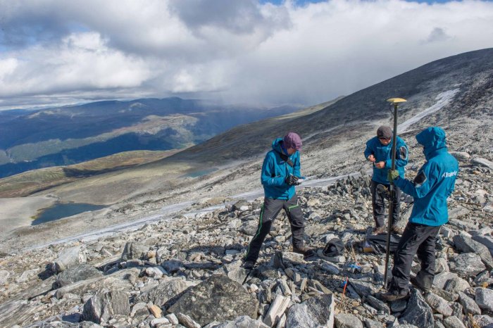 Fieldwork at the Lendbreen Glacier where archaeologists stumbled across the tunic. Credit: Secrets of the Ice