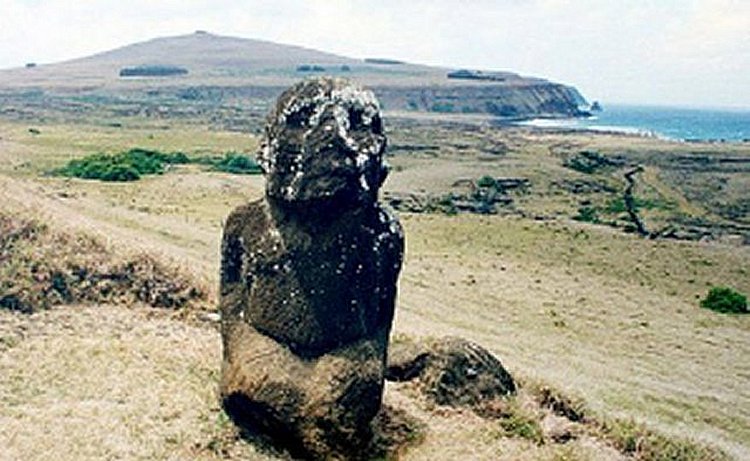 The only kneeling Moai at Easter Island. Photographed by Brocken Inaglory in November of 1998. Image credit: Brocken Inaglory - CC BY-SA 3.0