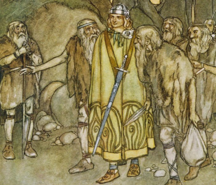 Legend has it that Fionn's father was Cumhal, the leader of Fianna warriors, and his mother was Muirne (Muirenn, Murna), daughter of the druid Tadg and granddaughter of Nuada of the Silver Hand, who possessed a marvelous weapon known as the 'sword of Nuada' or 'shining sword.'