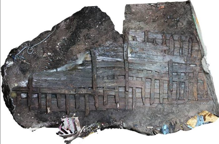 Archaeologists usually participate in such projects, in case anything of historical value will be found, were amazed when they noticed wooden parts of this old ship.