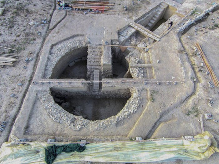 The round tombs, called Tholos VI and VII, at one time were lined with gold foil and contained artifacts that could shed new light on life in ancient Greece. Aerial photo/Denitsa Nenova/UC Classics