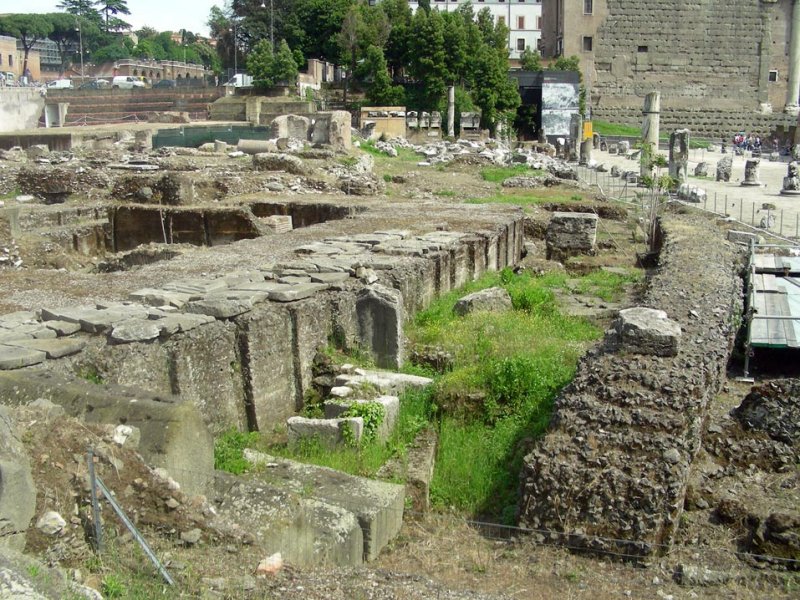 Rome, Nerva's Forum (Imperial Forums), remains of a temple foundation on short southwest side. Image credit: MM - CC BY-SA 3.0