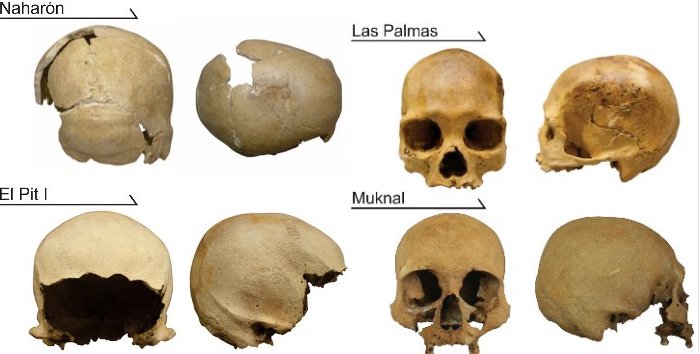 The four skulls analyzed in this study. Photos: Alejandro Terrazas Mata