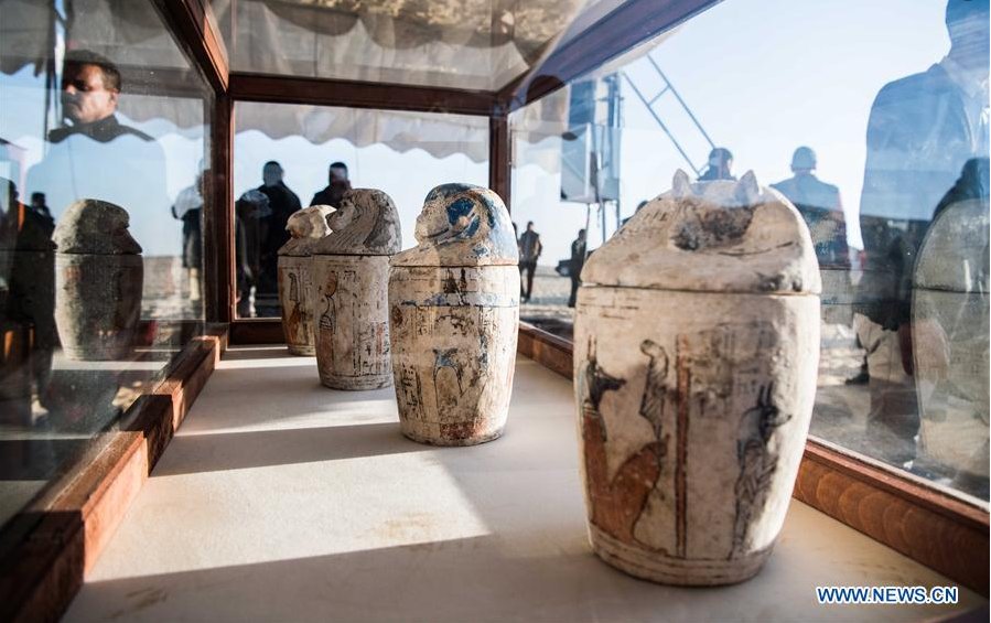 Newly discovered canopic jars are seen in Province of Minya, Egypt, on Jan. 30, 2020. Credit: Xinhuanet news