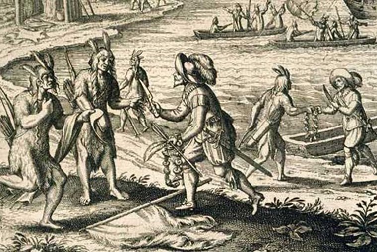 New evidence challenges longstanding narratives of early Indigenous-colonizer encounters, as depicted in this 16th-century Theodor de Bry engraving. (Source: British Library)