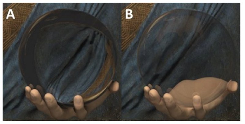 Rendering of a solid orb. (B) Rendering of a hollow orb. Credit: Laing et al., arXiv.org, 2019