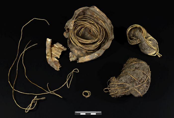 Inside the bowl were two gold bracelets made of coiled wire and two clumps of organic material, enigmatic at the time of discovery.