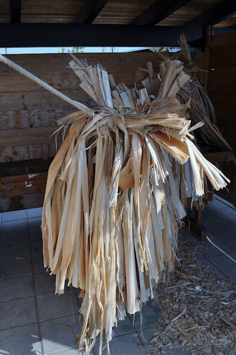 Bast fiber is found between the bark and the wood in trees such as willow, oak or linden. The people from Catalhöyük used oak bark, and thus fashioned their clothes from the bark of trees that they found in their surroundings. They also used oak timber as a building material for their homes, and people undoubtedly harvested the bast fibers when trees were felled.