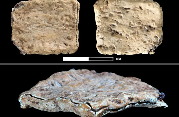 This lead curse tablet, discovered in Israel, is the oldest known Hebrew text. Credit: Michael C. Luddeni