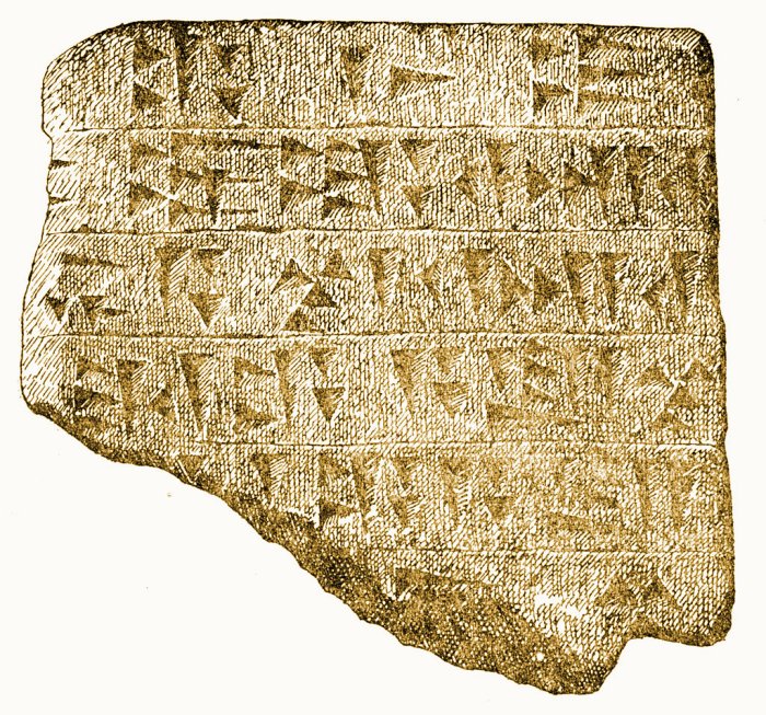 Urartian Tablet - a faithful photographic reproduction of a two-dimensional, public domain work of art. The inscription (unearthed in 1936) contained the name of the King of Urartu-Rusa II, son of Argishti II.- Public Domain
