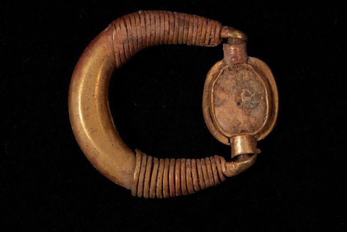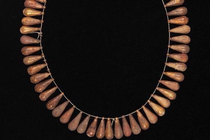 The jewelry had originated from the interment of a young adult female, who was buried wearing a necklace of petal-shaped pendants and three finger rings, Mostafa Waziri, secretary general of the Supreme Council of Antiquities explained.