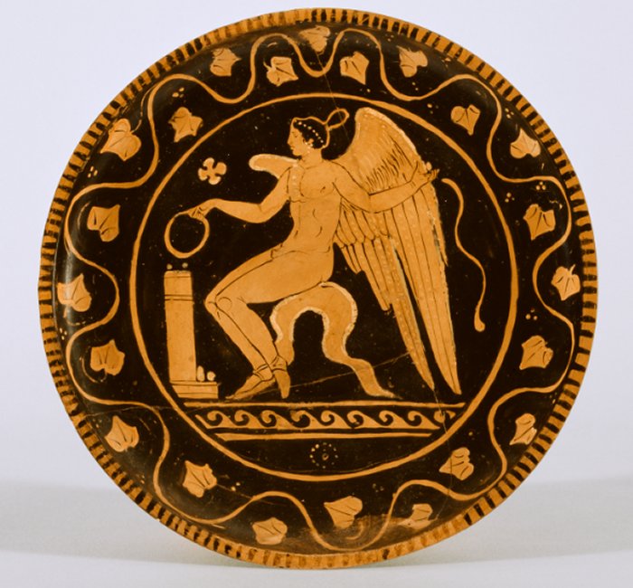 Plate with Eros; 340–320 BC; red-figure terracotta; 5 × 24.4 cm; Walters Art Museum, Baltimore, US) – Public Domain