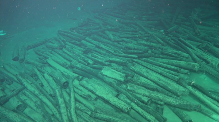 Neatly placed wooden logs are found on Northeast Continental Slope No 2 Shipwreck of the South China Sea. Photo provided to China Daily