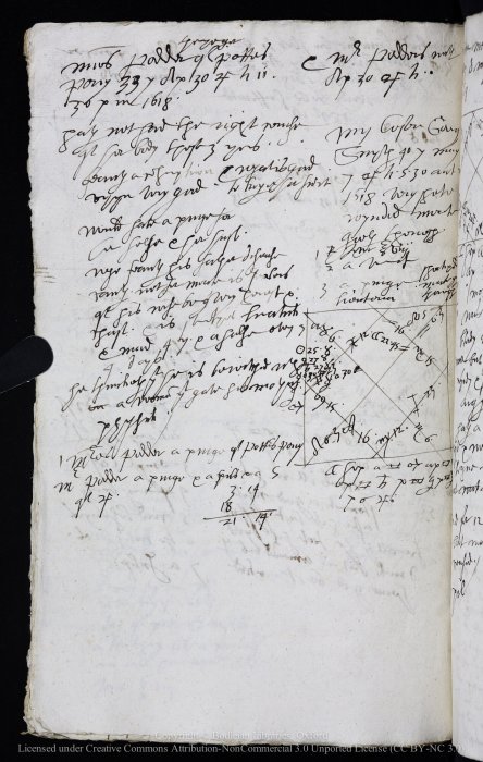 A page from the casebooks of Richard Napier that includes the case of Mrs Pedder the younger of Potters Perry, who suspects a female healer of witchcraft. (CASE46520). April 30. Thursday 11.30pm. 1618. Credit: Bodleian Library