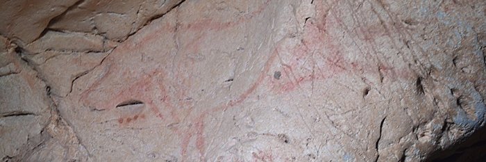 A Paleolithic painting of an aurochs from the cave of La Pasiega. The Paleolithic artist traced the natural cracks in the cave wall when painting the head, horns, and back leg of the animal. Credit: Izzy Wisher, courtesy of the Gobierno de Cantabria