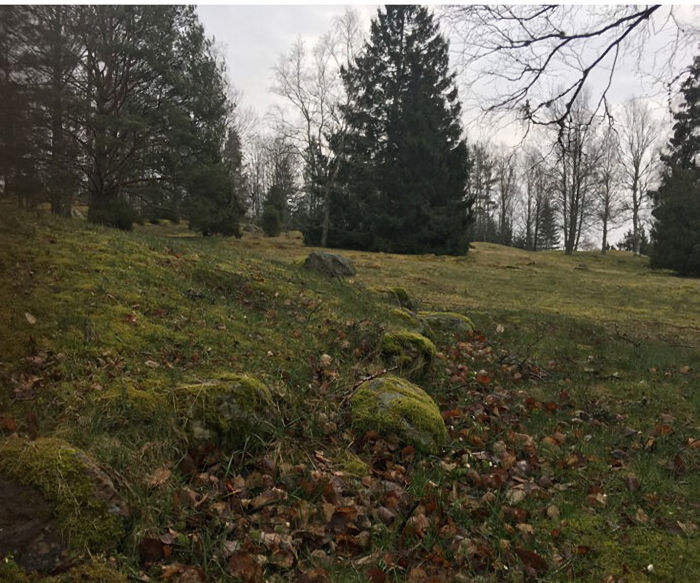 La tumba de la época romana Stubhøj y el almacén Vikingegrav en el cementerio Hunn en Østfold están marcados con bordillos. Crédito de la imagen: Julie Lund